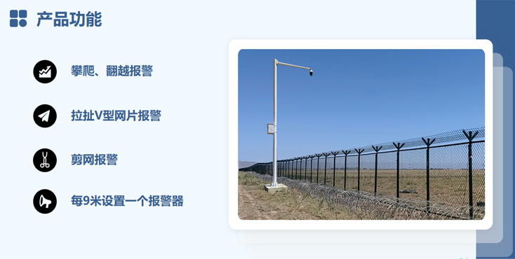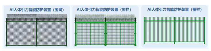 AI人体引力智能防护装置(一体化围网)由AI人体引力传感器、防剪断报警围网、立柱、V型网片等组成,系统实时监测活体心跳信号变化量,并进行有效分析和计算,一旦有非法入侵或剪断围网,立即报警。